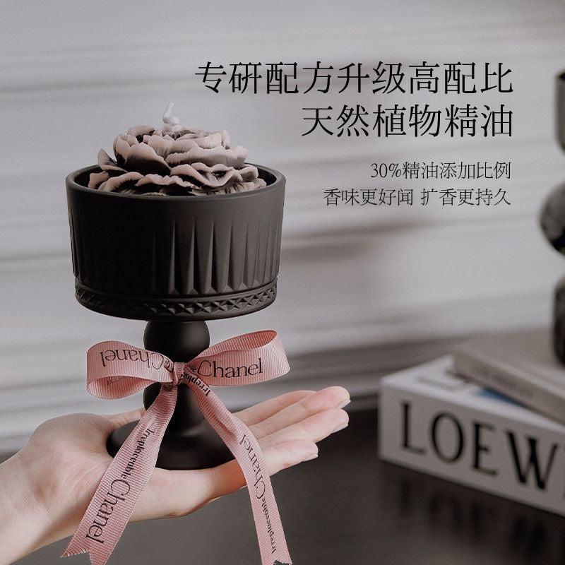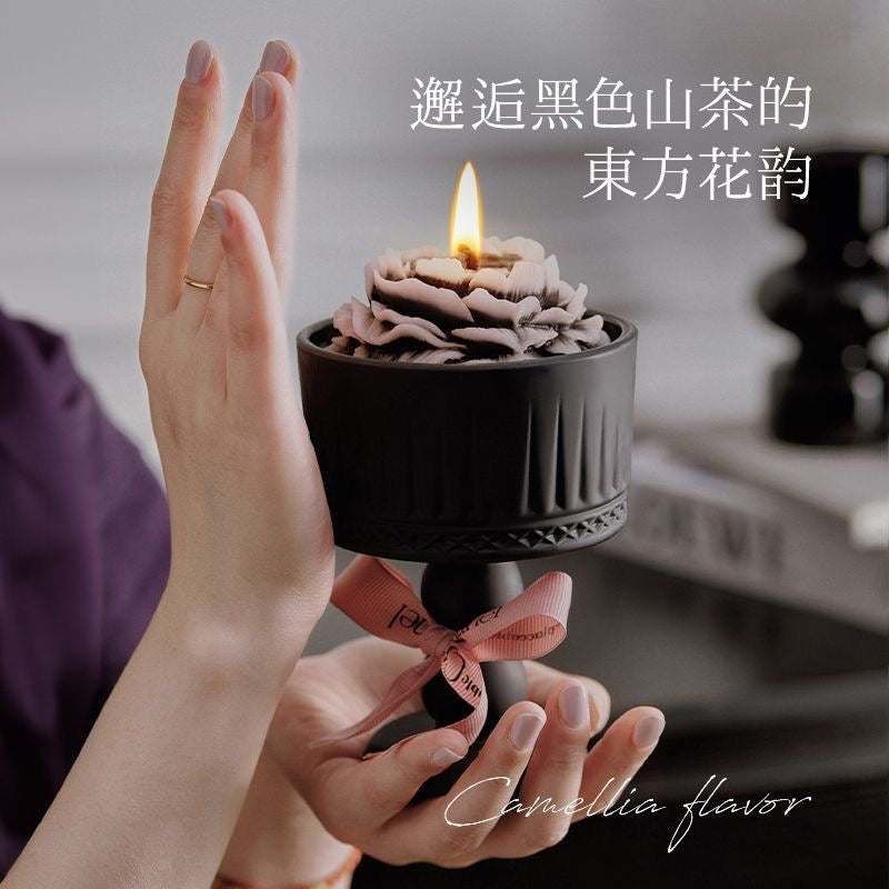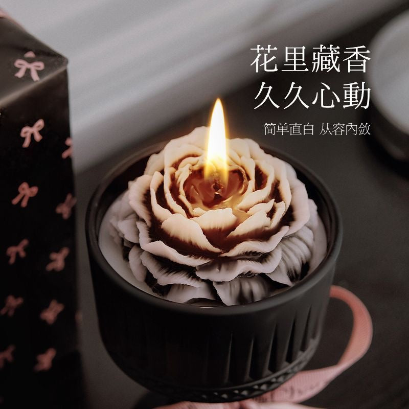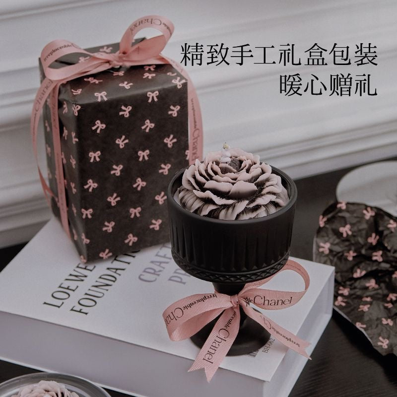 The delicate camellia-shaped wax flower slowly releases layers of soft, floral aroma as it burns, bringing warmth and calm to any moment. Presented in a sleek matte-black glass cup with a satin pink ribbon, it’s perfect as a thoughtful gift or a touch of elegance for your home.