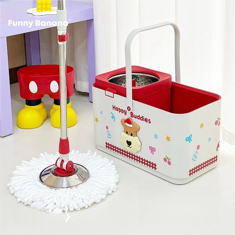 HappyClean Spin Mop Bucket Set with 6 Mop Heads